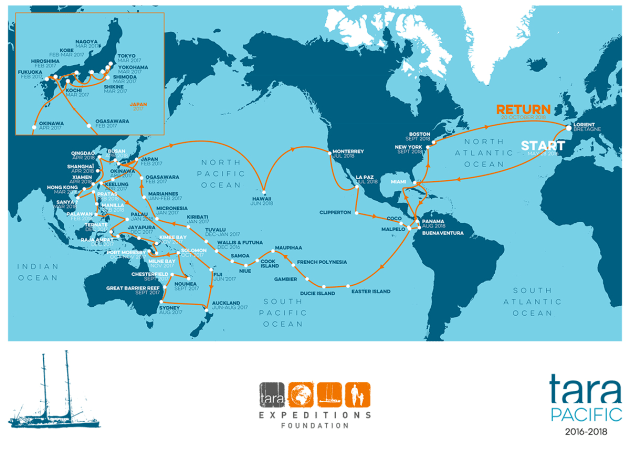 Since 2003, Tara has sailed all the oceans of the globe, undertaking research to understand the impacts of climate and ecological changes to anticipate future crises. In the course of 11 expeditions covering more than 375,000 km, Tara and her scientific partners discovered nearly 100,000 microscopic marine species and millions of new genes. Research carried out by 117 international laboratories, including the CNRS, CEA, EMBL, MIT and PSL, has resulted in more than 120 scientific publications, nine of them in the most prestigious journals. The schooner has completed the following expeditions: Tara Arctic (2006-2008) drifting in the Arctic ice pack during 507 days, Tara Oceans (2009-2013), revealing 80% of the unknown Ocean microscopic life, Tara Mediterranean (2014) on the impact of micro plastic pollution. Tara is now carrying out the Tara Pacific expedition (2016-2018) to better understand the biodiversity of coral reefs, from the gene to the ecosystem.