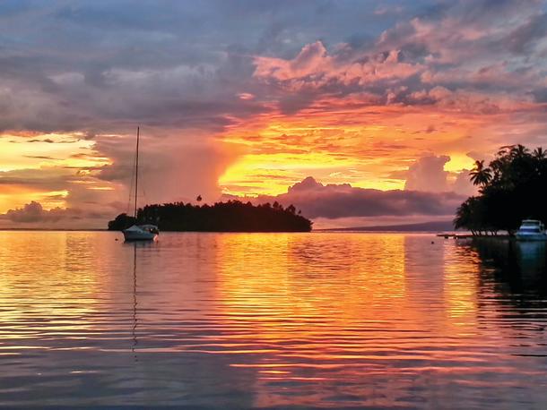 Finally, the wind filled in and we zoomed up Ferguson Passage towards Ghizo Island as the sun was bending towards the horizon. We found the barely marked, narrow pass through the reef and looked forward to the shelter of the lagoon and the stillness of being on anchor after four torturously slow days at sea.