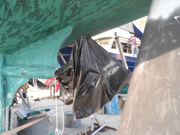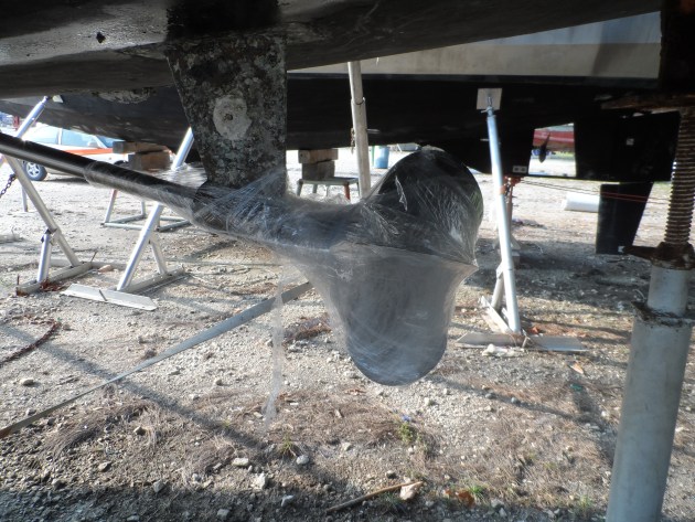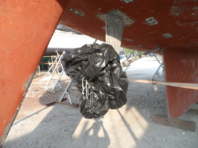Bag propellers to prevent marine growth on them. Some boat owners bag their props when on the hard to keep shaft grease in and dust out of the coupling.